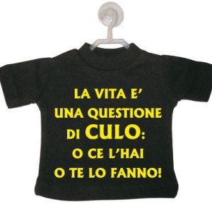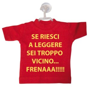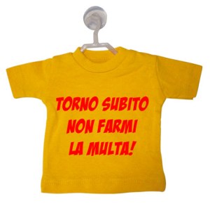 La mini t-shirt viene fornita con gruccia e ventosa, applicabile ai vetri dell'auto, ma anche alla tua vetrina, alle piastrelle di casa e su qualsiasi superficie liscia.